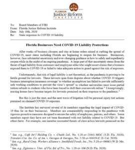 Florida Chamber Litigation Center: COVID-19 Liability Protection Letters